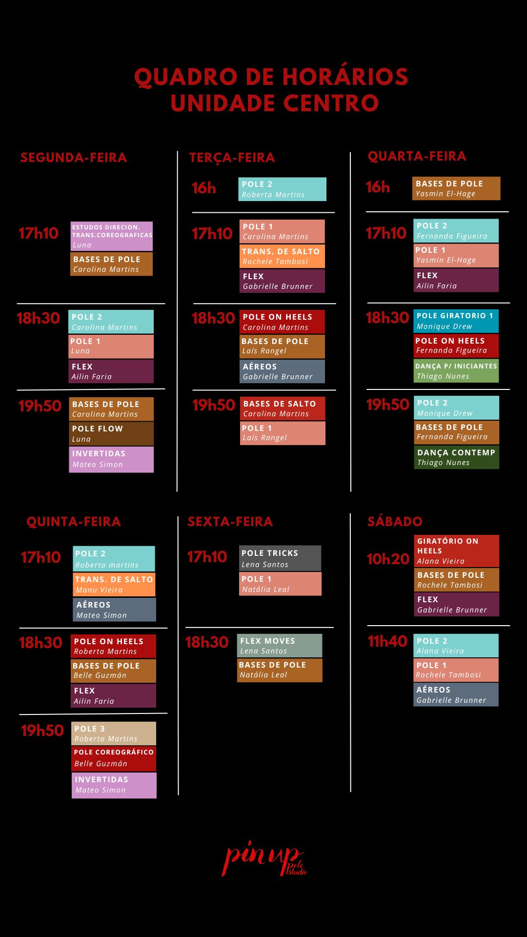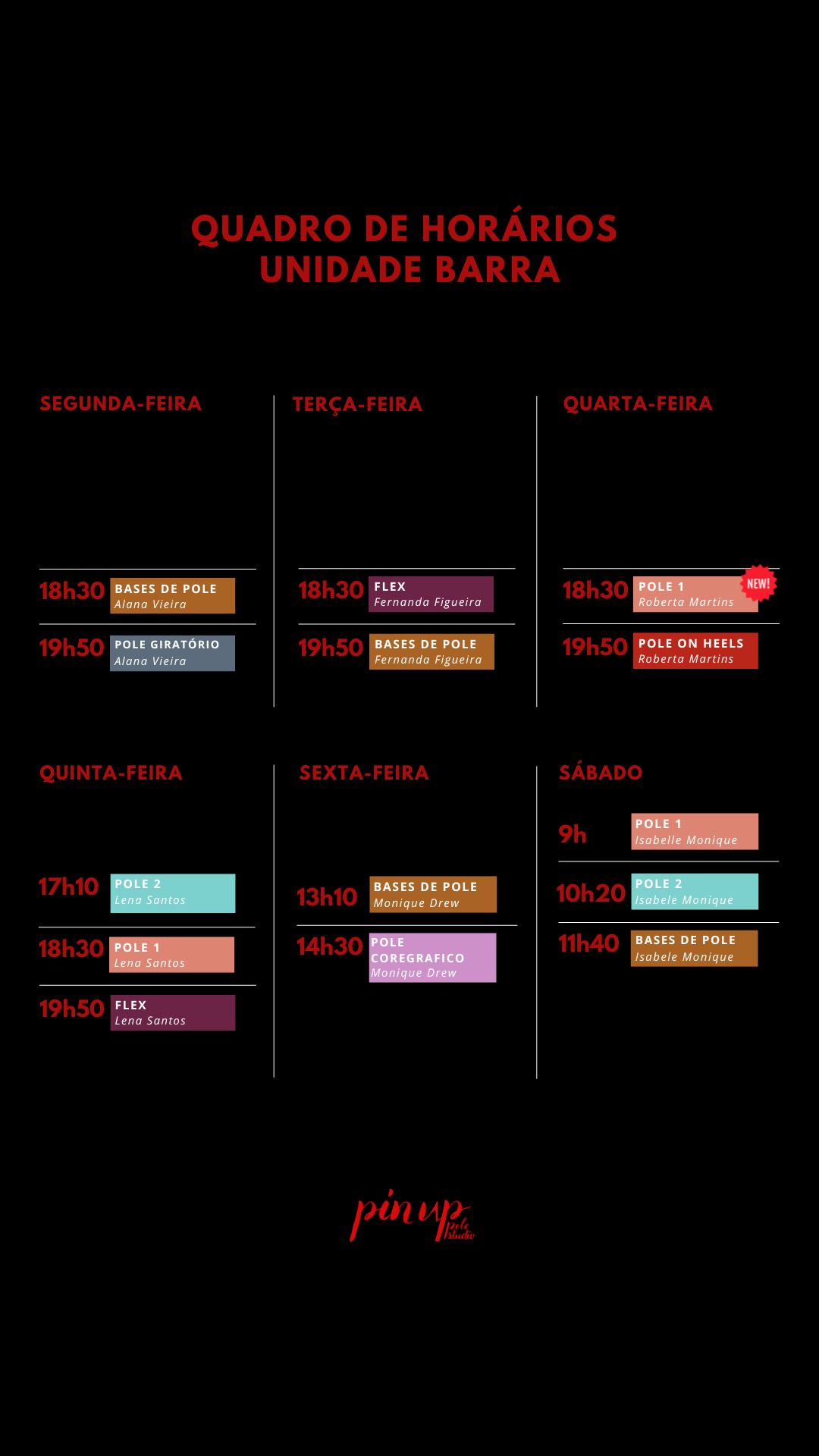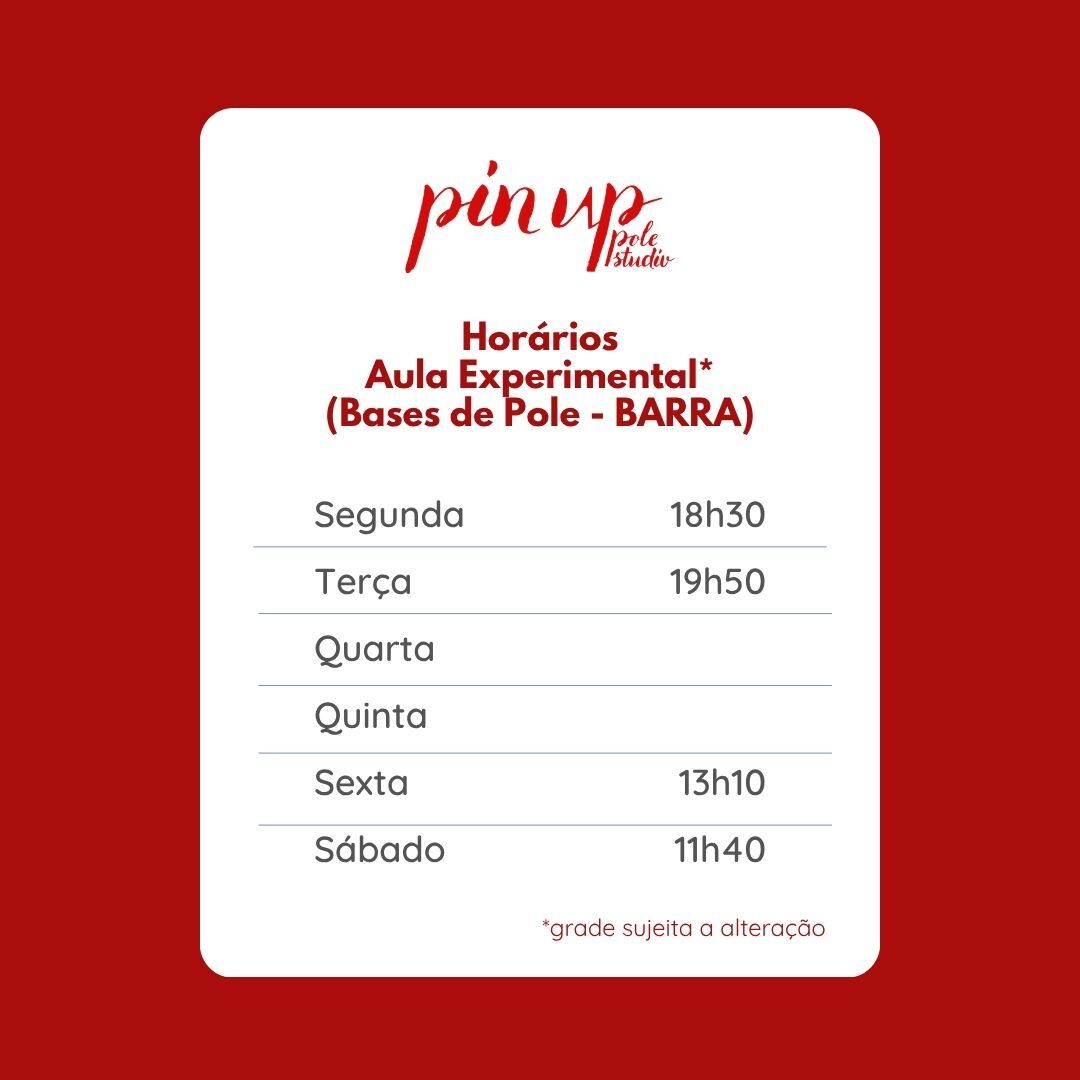 - Confira a tabela de horários de “Bases de Pole (Pole Iniciante)” nas imagens.